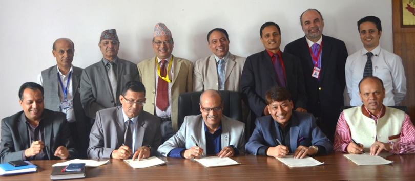 उपेन्द्र पौडेल, डेभलपमेन्ट बैंकर्स एसोसिएशनका अध्यक्ष कृष्णराज लामिछाने र